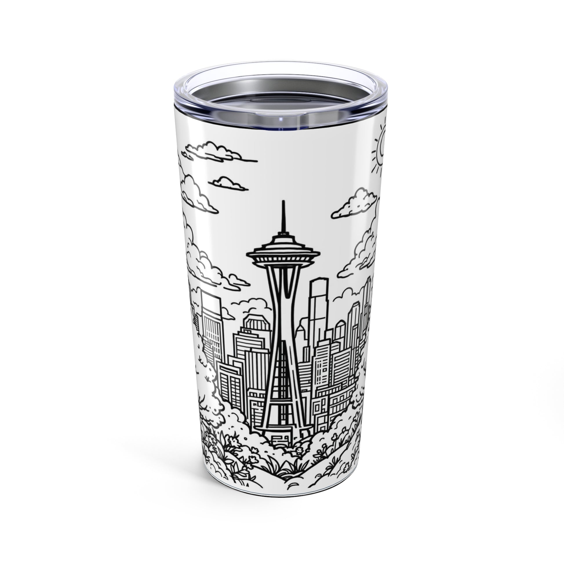 I.O.V-Seattle 206 Skyline 20oz Tumbler - Black & White Space Needle Travel Cup