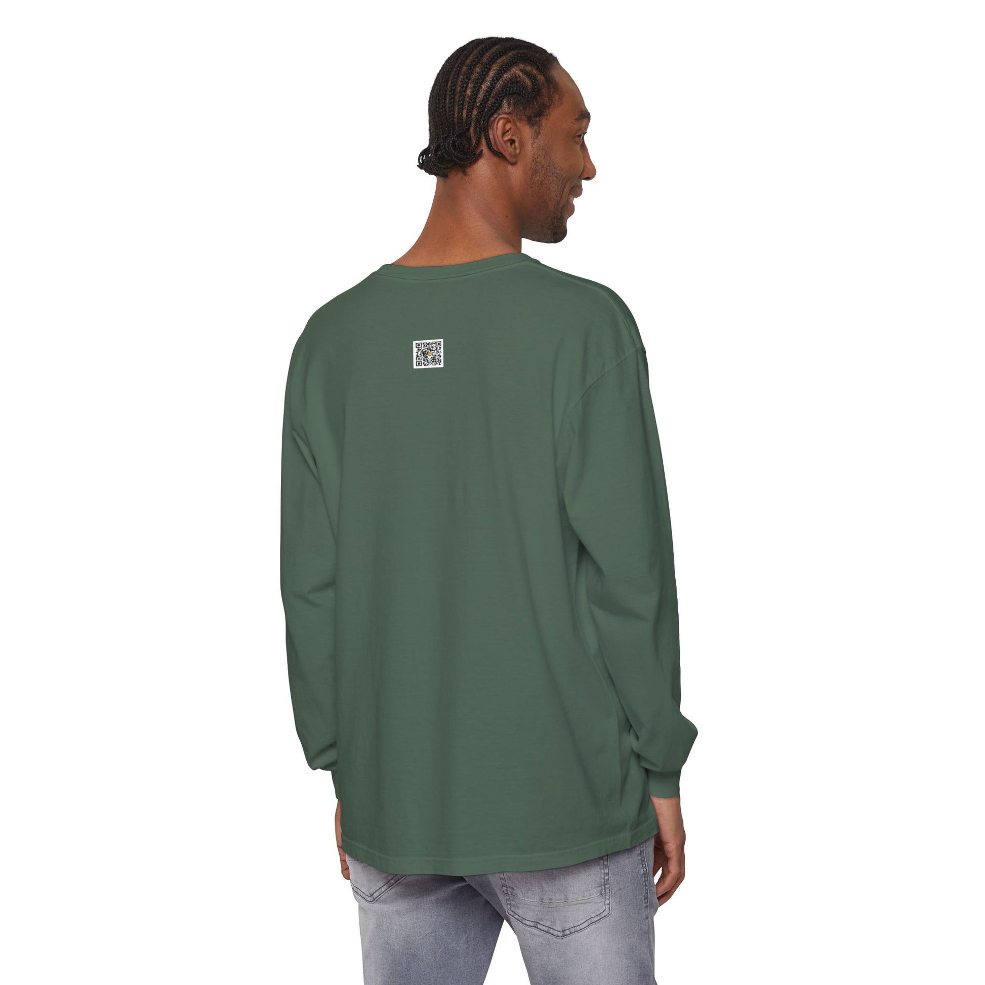 A soft, garment-dyed long sleeve that reads like a quiet statement. The classic-fit cotton hangs relaxed at the shoulder, with ribbed cuffs that hold shape after many washes and a weighty mid fabric that still breathes. The simple, hand-drawn script graphic sits centered on the chest, subtle and slightly worn from the dyeing process — comfortable for slow mornings, neighborhood walks, or layering under a jacket. Built with reinforced double-stitched hems and neck/shoulder twill tape, this tee feels lived-in from day one yet made to last. Made in Honduras with a sewn-in twill label and covered by a 2-year EU warranty.