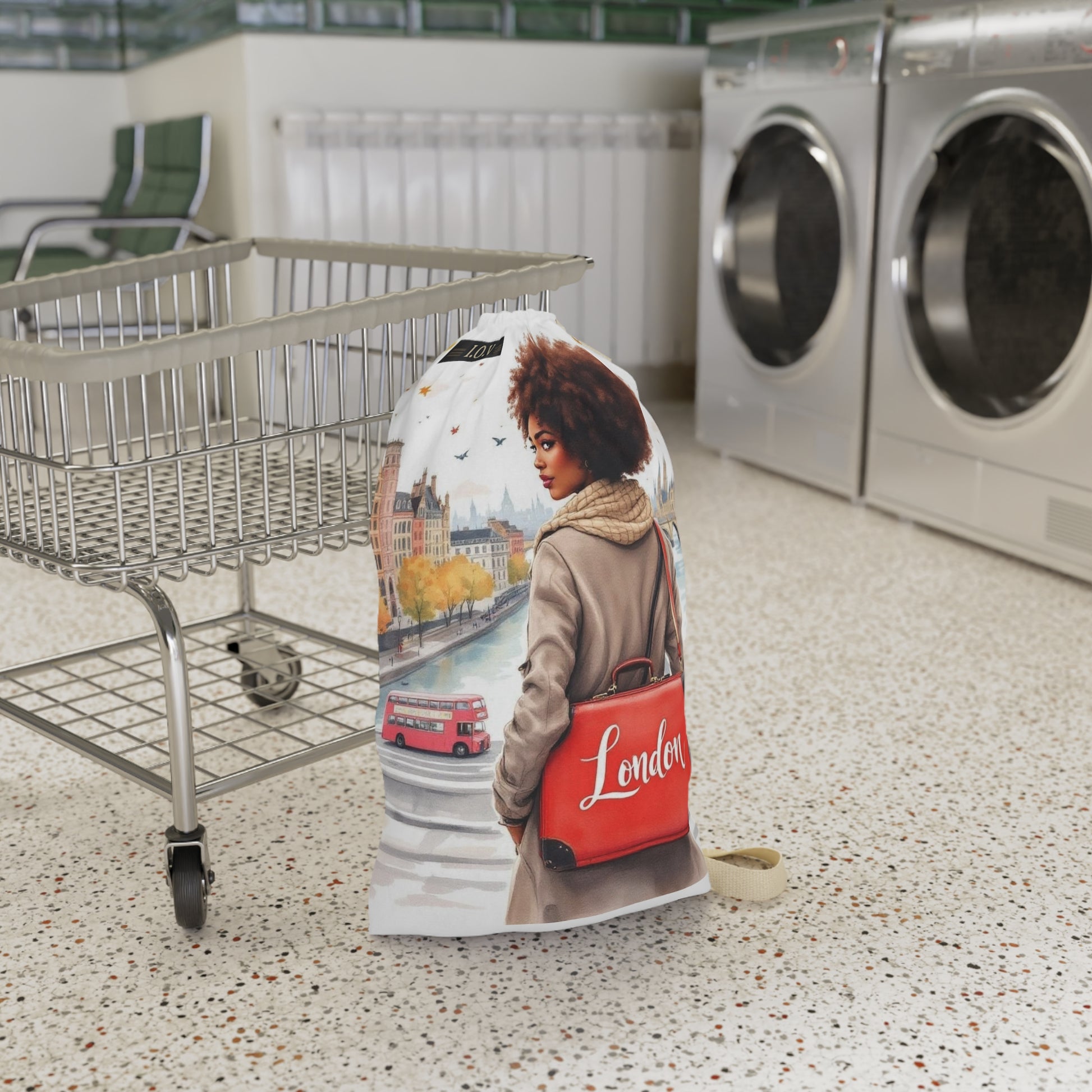 The I O V-London Laundry Bag offers a vibrant and colorful design to make laundry day more fun and stylish. Made from 100% spun polyester, this custom laundry bag retains its shape and is wrinkle-resistant. Perfect for anyone looking to add a pop of color to their laundry routine, this bag is available in two sizes and features a drawstring closure for convenience.